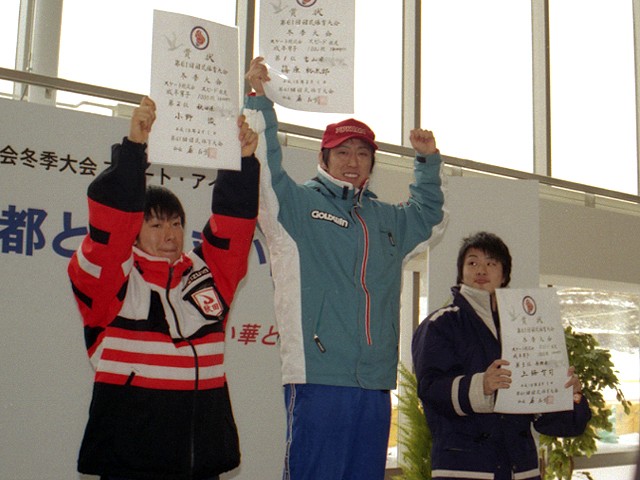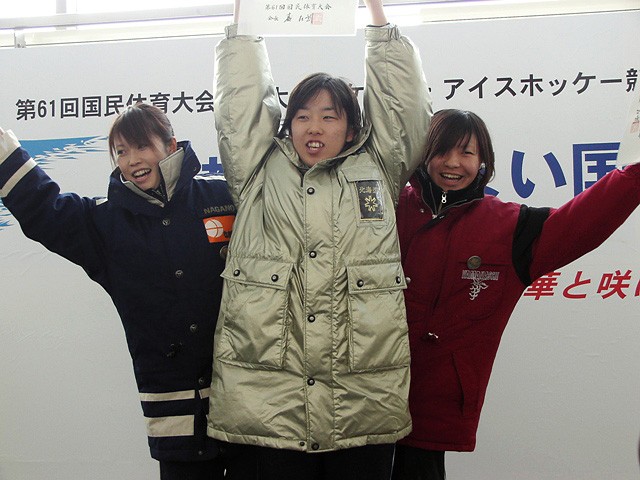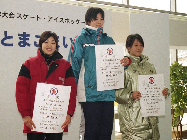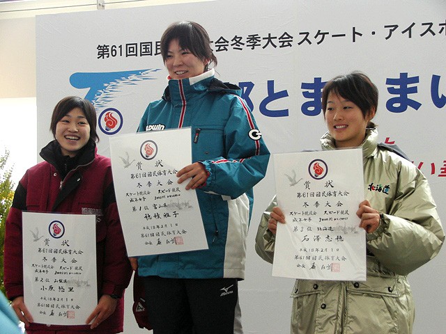 成年女子500m表彰式 大菅淳子選手(日本電産サンキョー)・溜井公子選手(岸本医科学研究所)・石田誌保選手(山梨学院大)