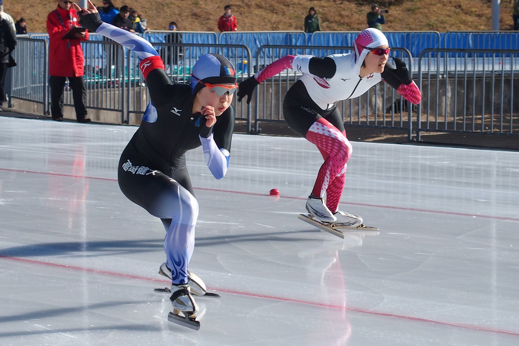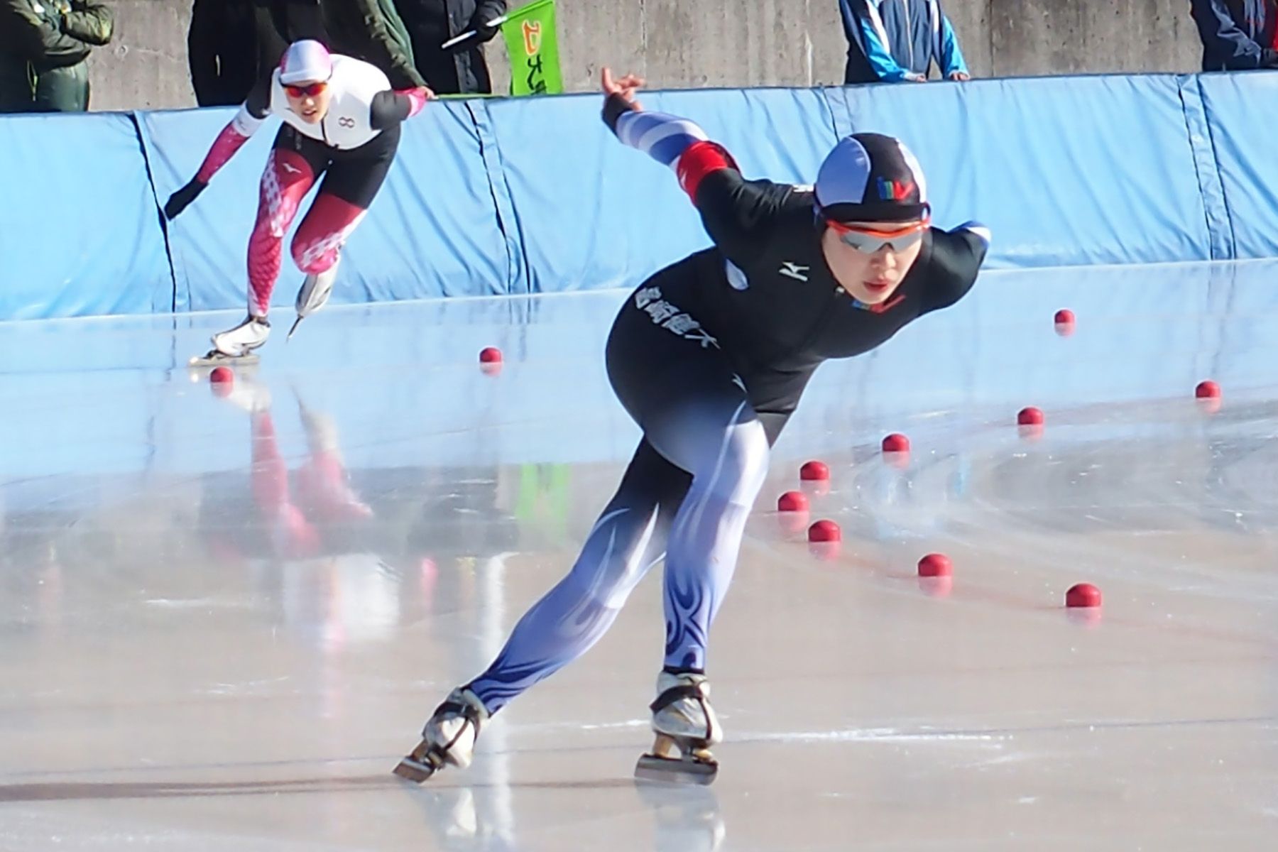 女子500m=佐藤綾乃選手(高崎健大)・大岩未奈美選手(八戸学院大)