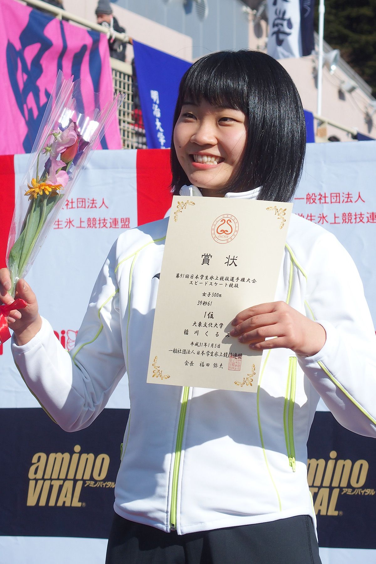 女子500m表彰式=稲川くるみ選手(大東文化大)