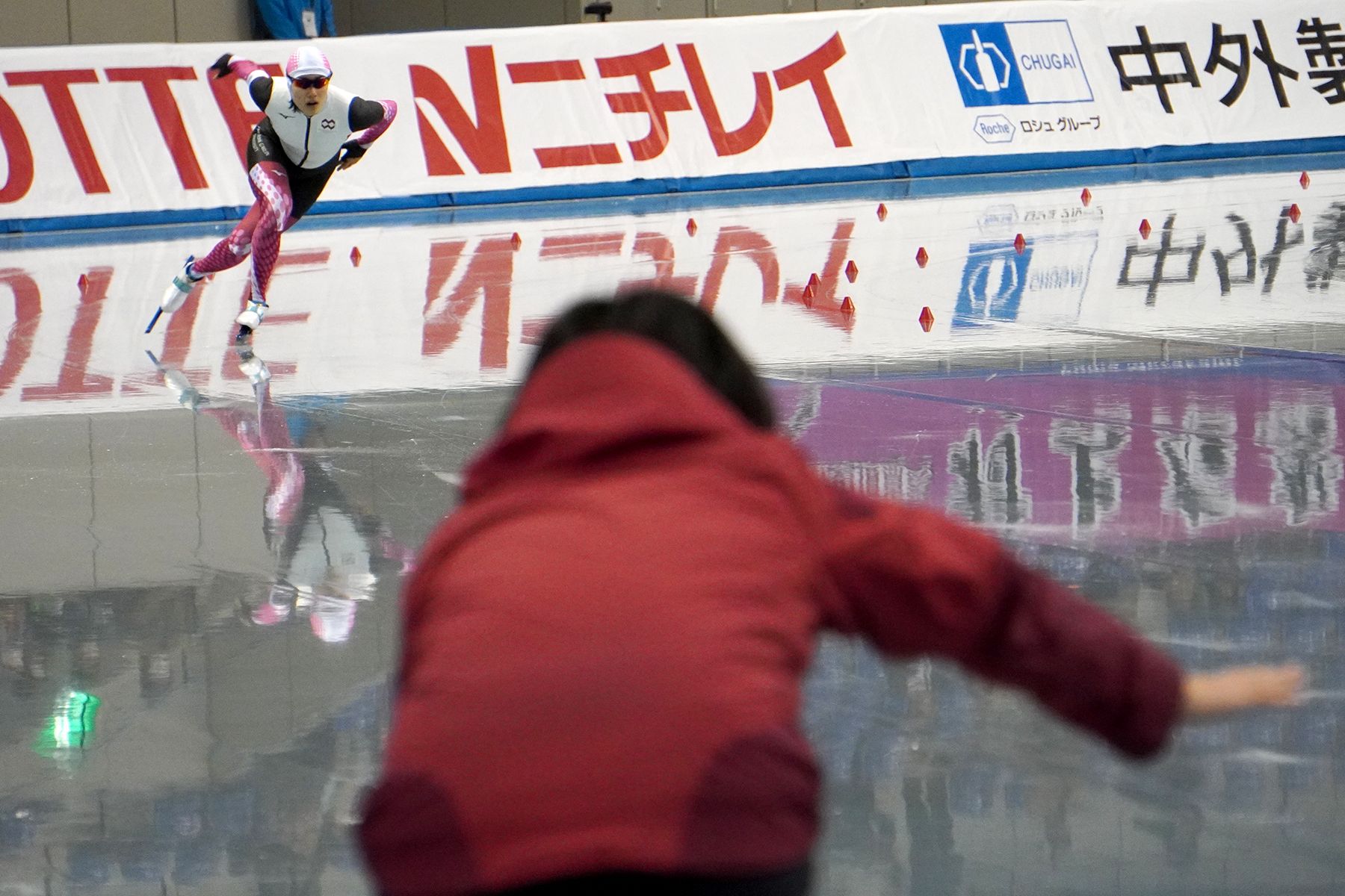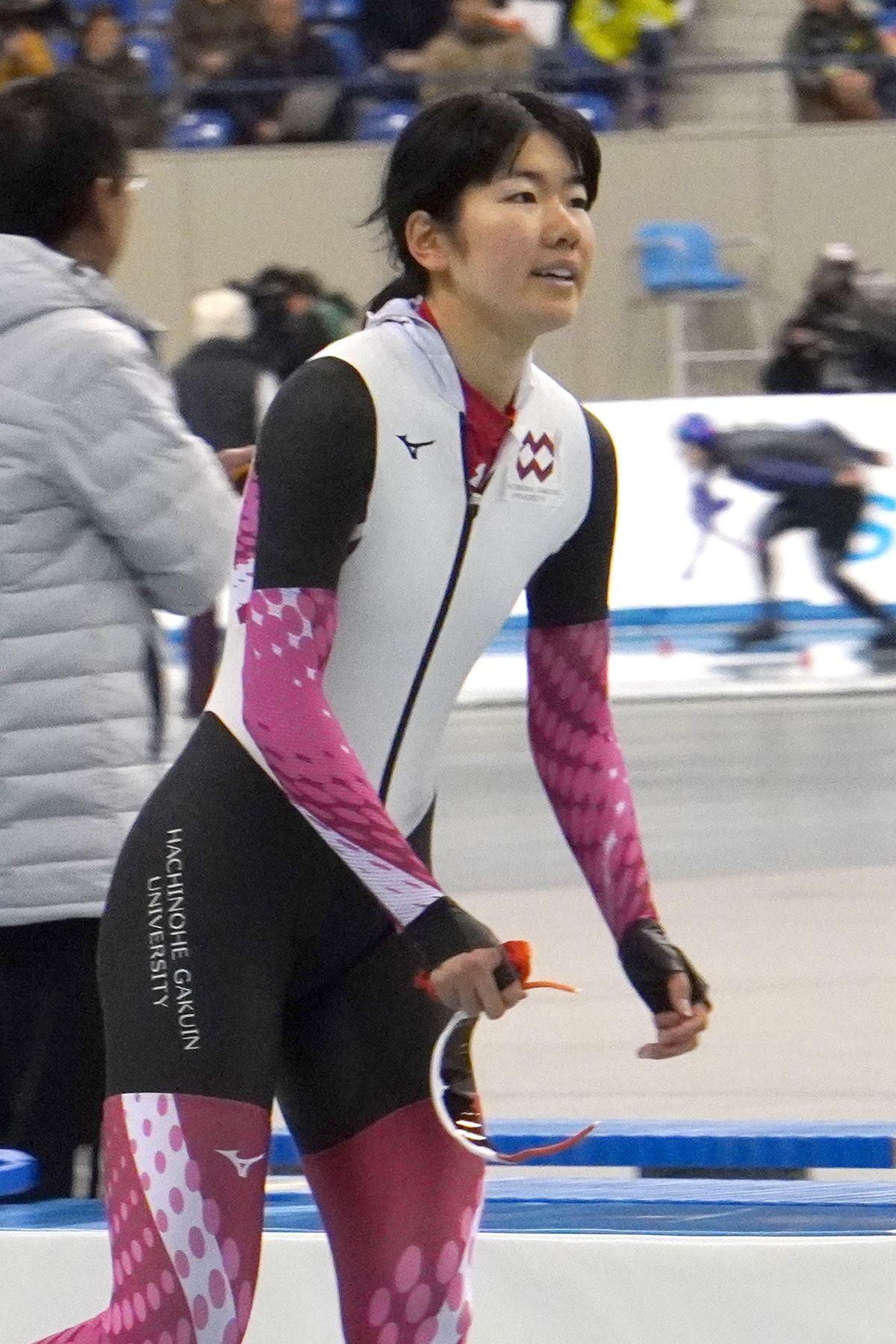 リンクサイドの大岩未奈美選手(八戸学院大)