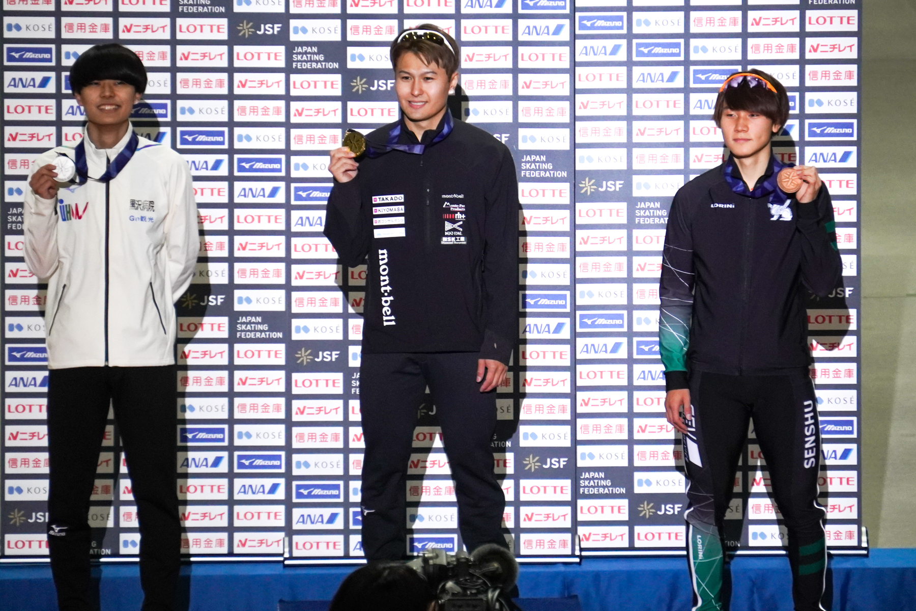 男子500m表彰式=山田和哉選手(高崎健大)・村上右磨選手(高堂建設)・森重航選手(専修大)