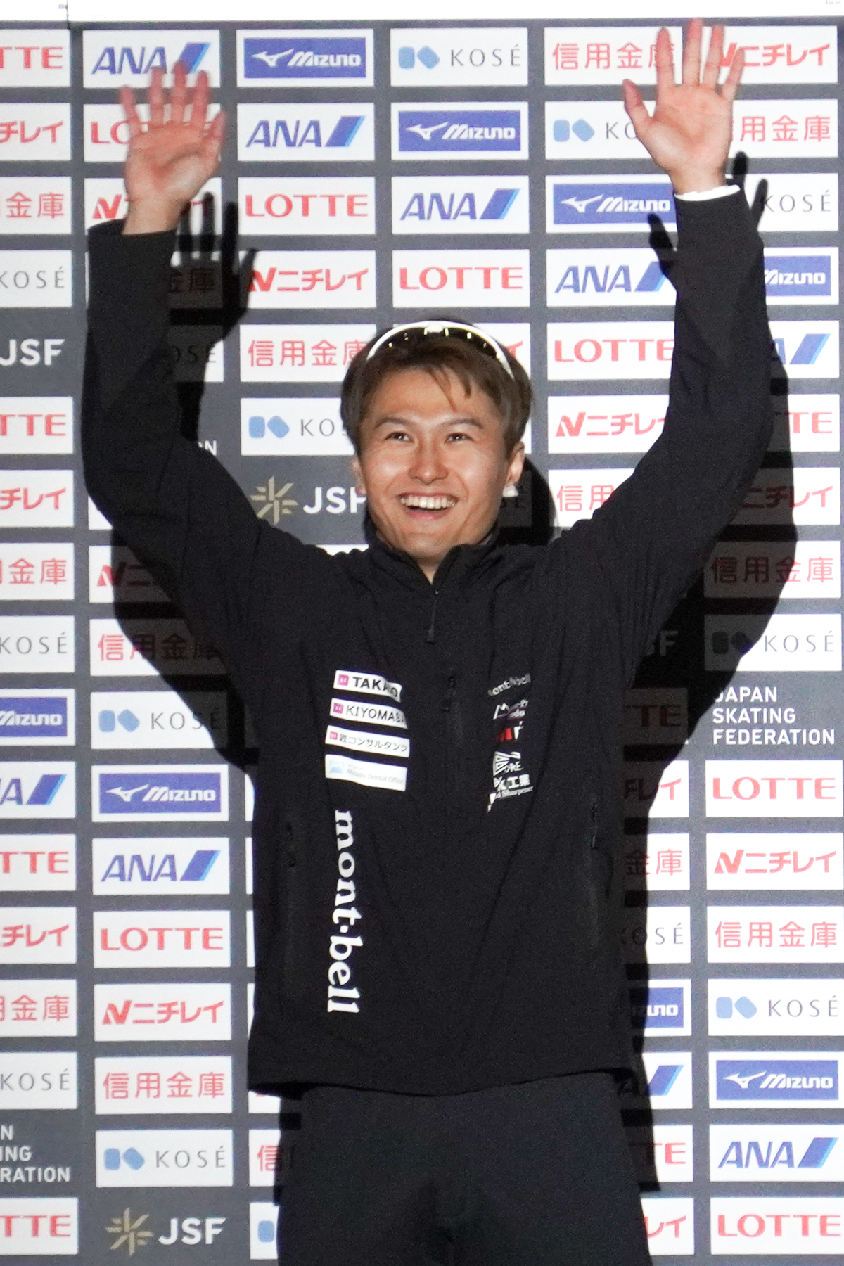 男子500m表彰式=村上右磨選手(高堂建設)