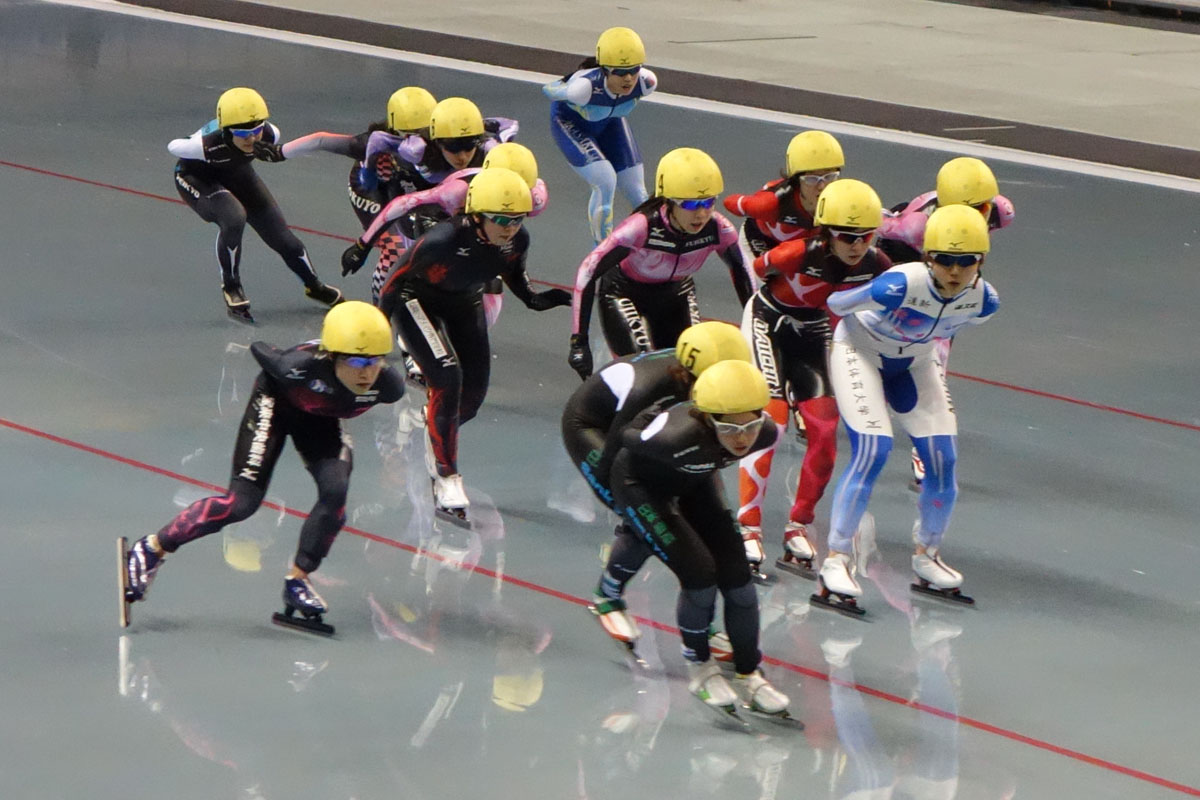マススタートレース 最終ラップ、髙木美帆選手(日体大)が先頭に