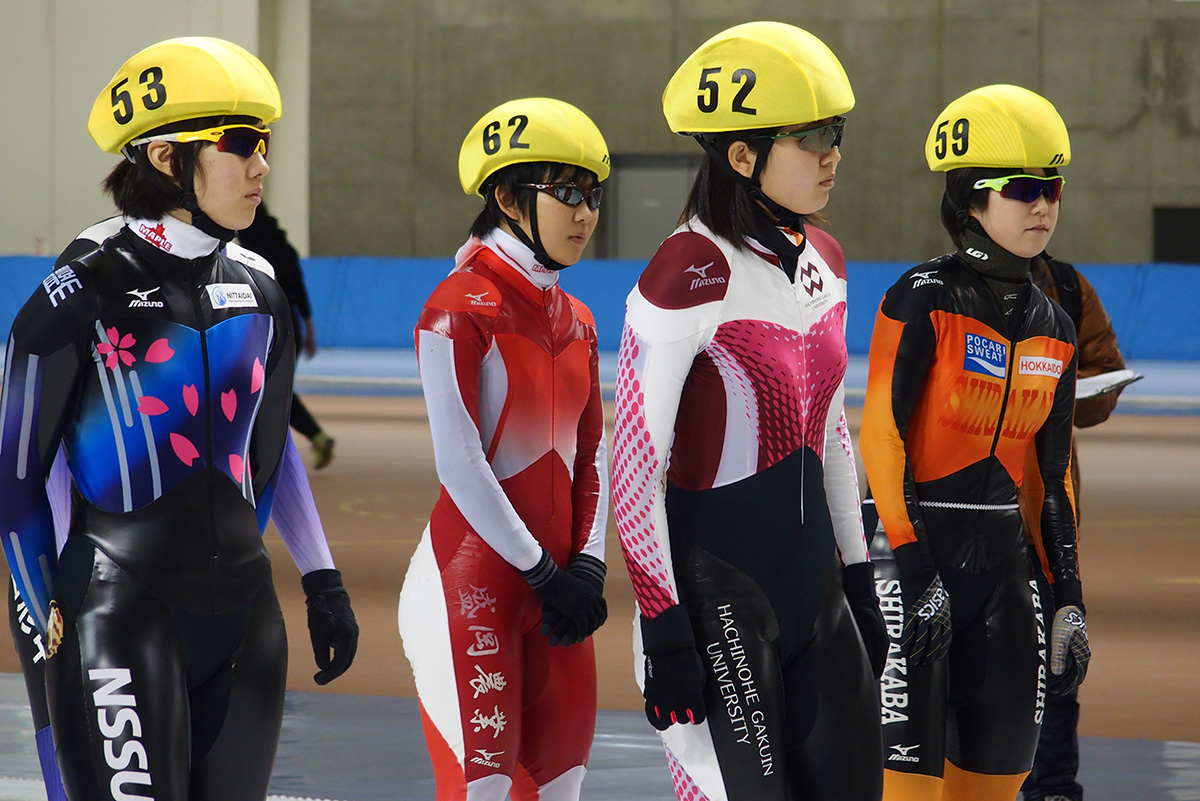 女子マススタート=澤尻磨里英選手(八戸学院大)・田中翔子選手(大東文化大)・鈴木杏菜選手(山形中央高)・富田裕香選手(大東文化大)・瀧上つくし選手(白樺学園高)