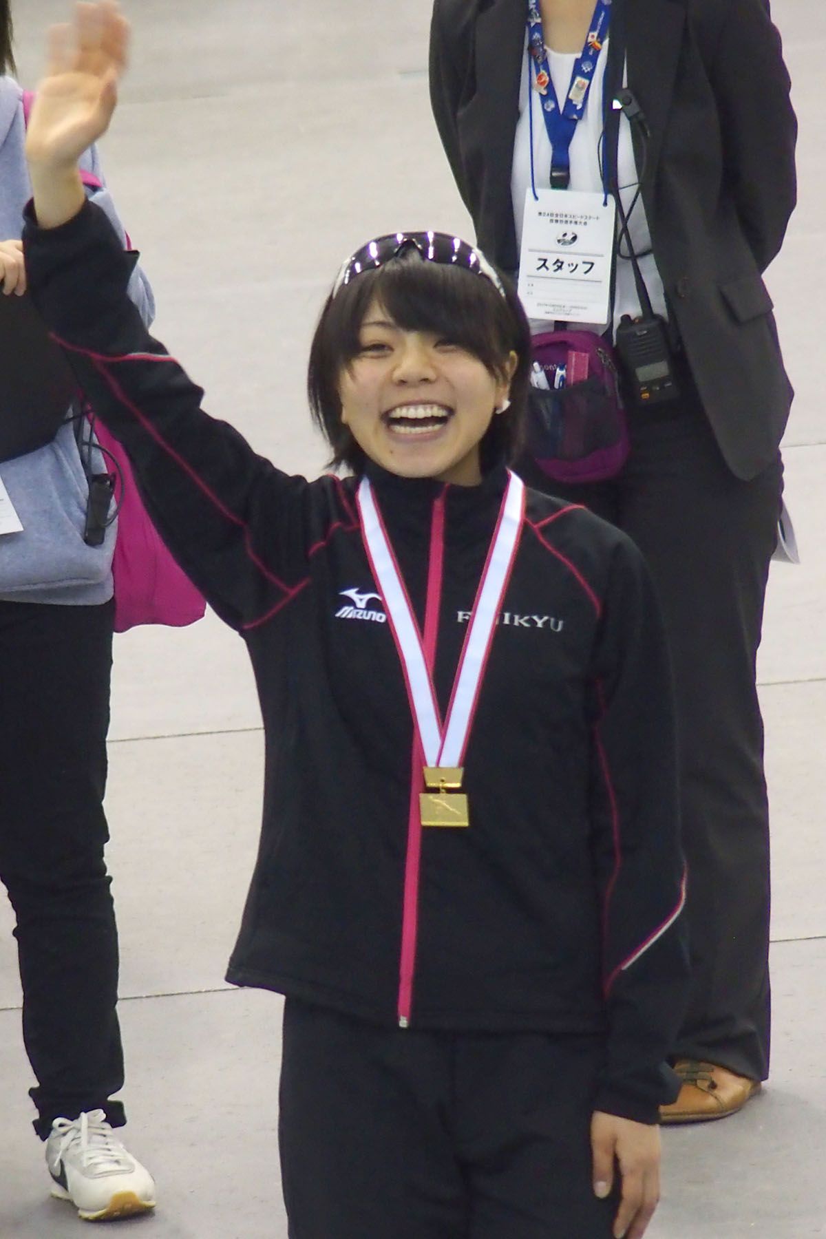 小平奈緒選手(相澤病院)と、後方に石澤志穂トレーナー