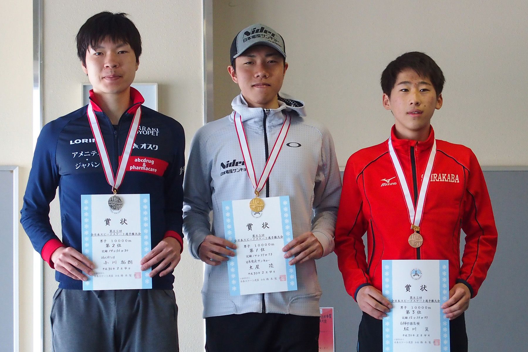 男子10000m表彰式=小川拓朗選手(abcdrug)・土屋陸選手(日本電産サンキョー)・堀川翼選手(白樺学園高)