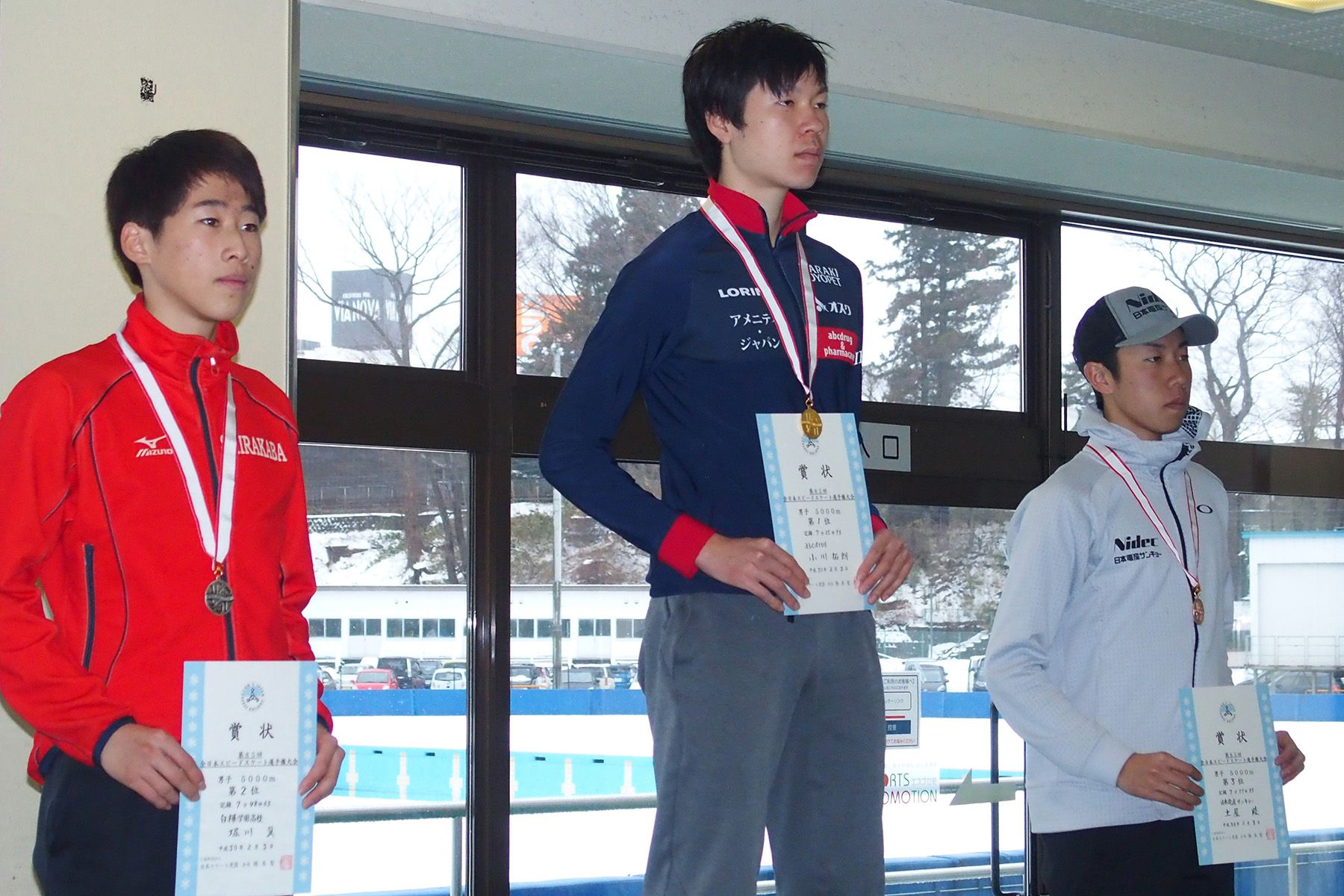 男子5000m表彰式=堀川翼選手(白樺学園高)・小川拓朗選手(abcdrug)・土屋陸選手(日本電産サンキョー)
