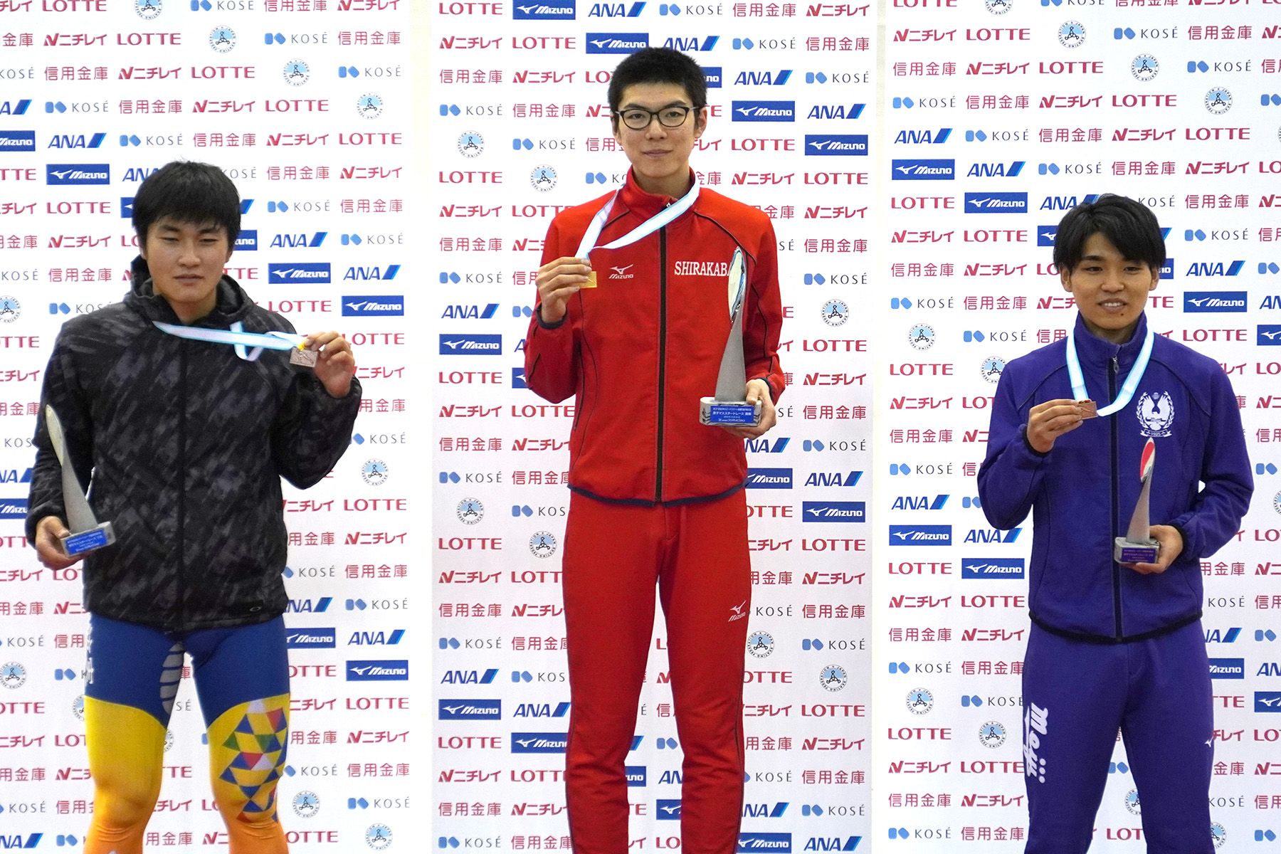 男子マススタート表彰式=松本一成選手(諏訪実業高)・菊池健太選手(白樺学園高)・篠原克哉選手(明治大)