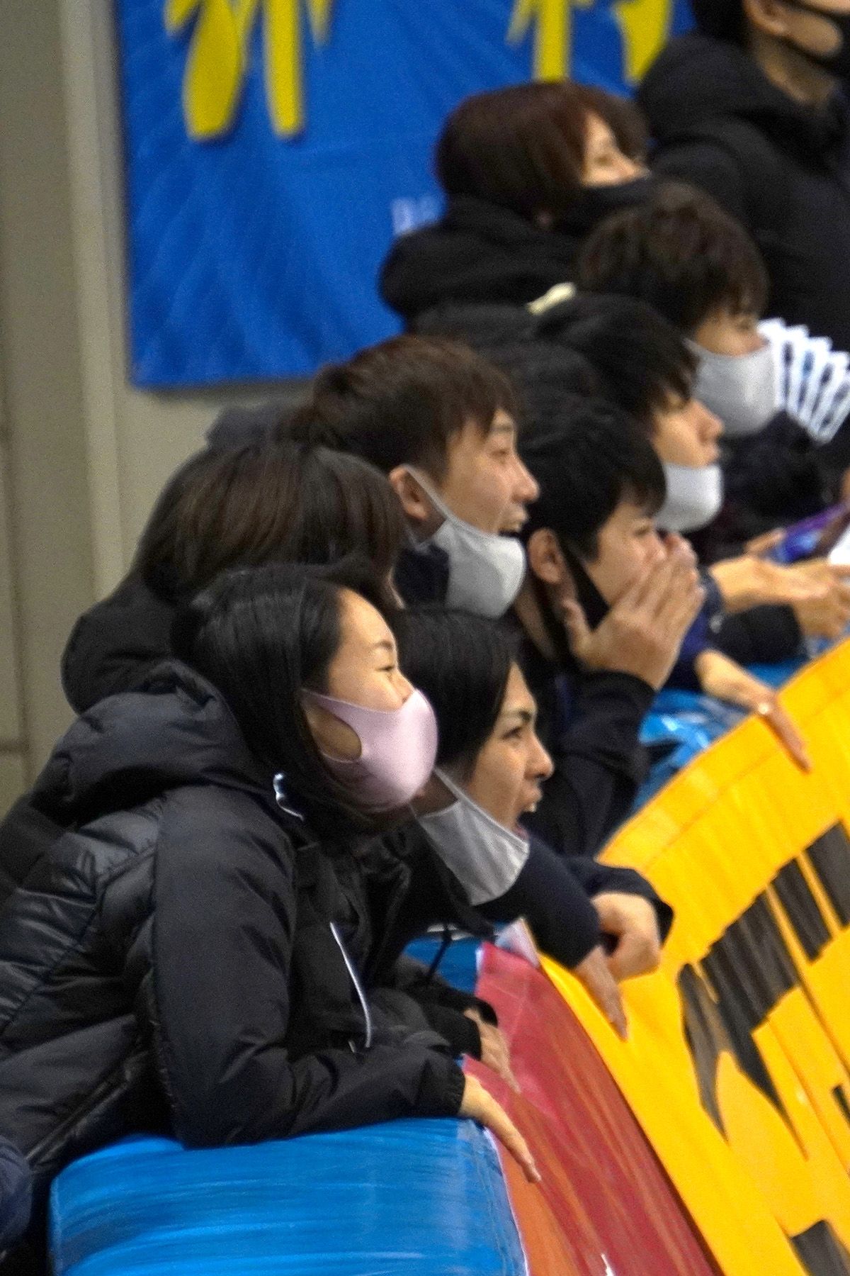 男子1500m=リンクサイドから声援を送る山根佳子選手(高鈴レジャーセンター)・中村駿佑選手(EH)ら