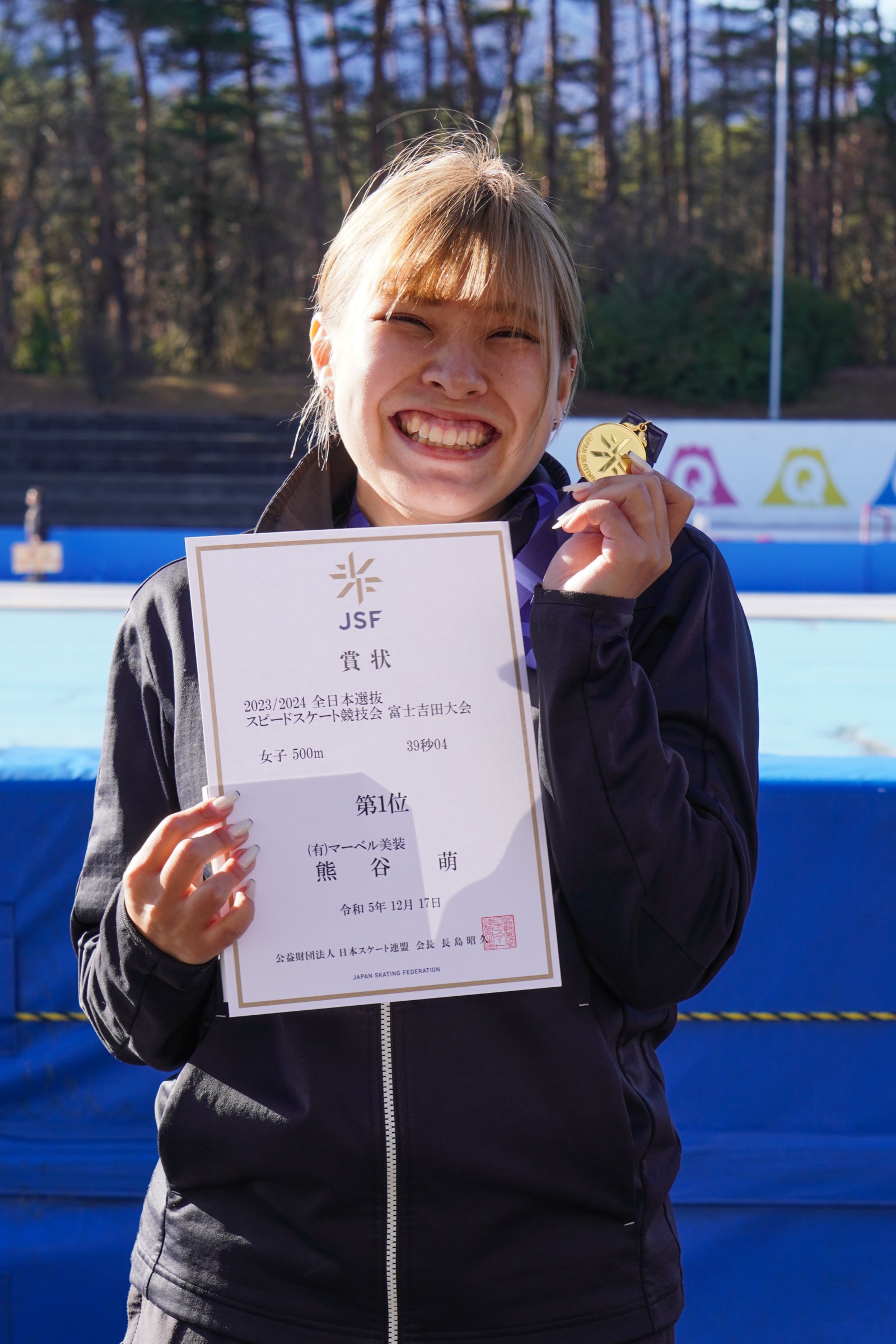 女子500m表彰式を終えて=熊谷萌選手(マーベル美装)
