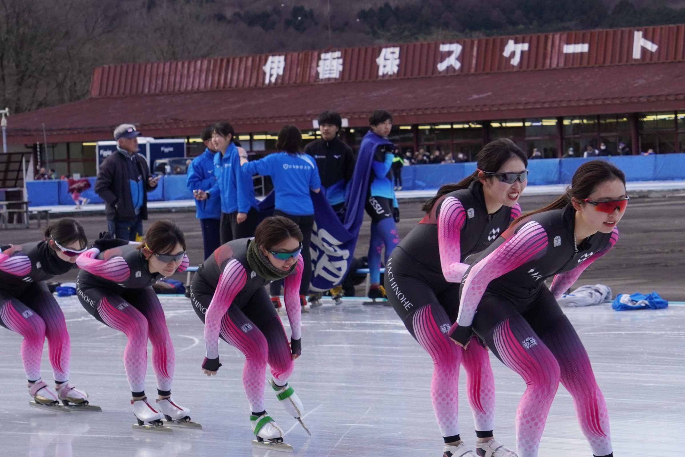 男子チームパシュート=八戸学院大チーム